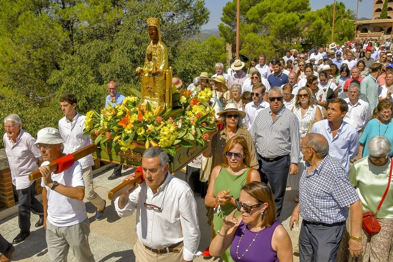 Al término de la celebración eucarística, vecinos de los pueblos cercanos llevaron en andas la imagen peregrina hasta la ermita rezando el rosario. Allí se cantaron los antiguos Gozos y ofrecieron diversos productos de la tierra. A continuación, se pesaron los bebés en una cesta de mimbre colocada en uno de los brazos de una antigua báscula. Los padres hicieron el ofrecimiento e igualaron el peso con diversos productos.