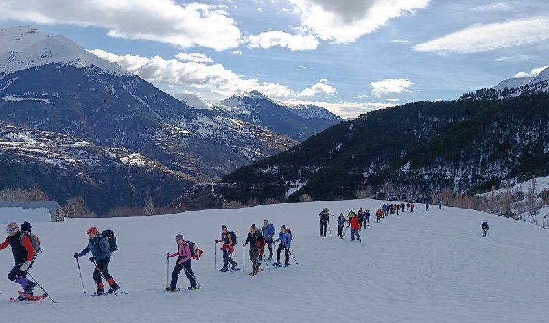 Por su parte, Miguel Sánchez cuenta en su cónica que el mismo día, treinta y seis integrantes del Club de Montaña Nabaín y del Club Atlético Sobrarbe celebrabábamos el Día del Raquetista en esta comarca altoaragonesa, con una ascensión al tozal de Igüerra (1956m), desde Gistaín/Chistén. Doce kilómetros y cerca de 500 metros de desnivel conforman la ruta realizada que, pasando por el mirador de Puyadase, sube por la pista de La Poma, para dirigirse al pequeño valle de Belicuengas y subir a la citada cumbre, que ofrece muy buenas vistas del valle de Chistau y de las montañas que lo circundan. La jornada fue espectacular, por la belleza del entorno con su manto invernal, y por una climatología que acompañó a los caminantes.
