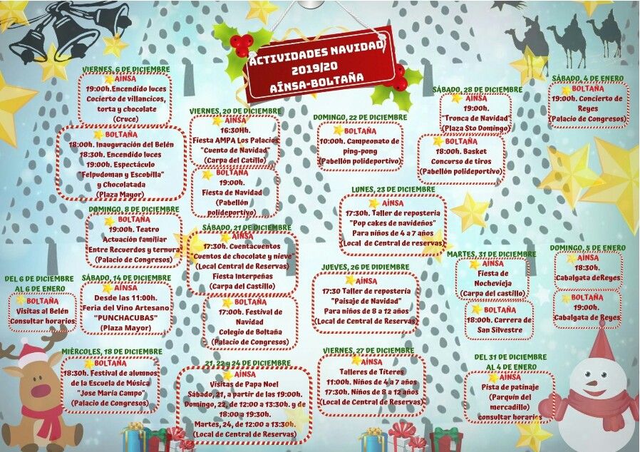 AinsaBoltañaSobrarbeSociedad Actividades para hacer en Navidad en Aínsa y Boltaña 07/12/2019 - 11:09 Foto: SobrarbeDigital. Programa de actividades familiares para hacer en Navidad en Aínsa y Boltaña. Cartel anunciador.