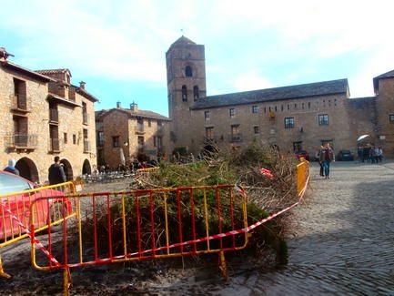 Hoguera preparada en la plaza Mayor de la villa. Foto: SobrarbeDigital.