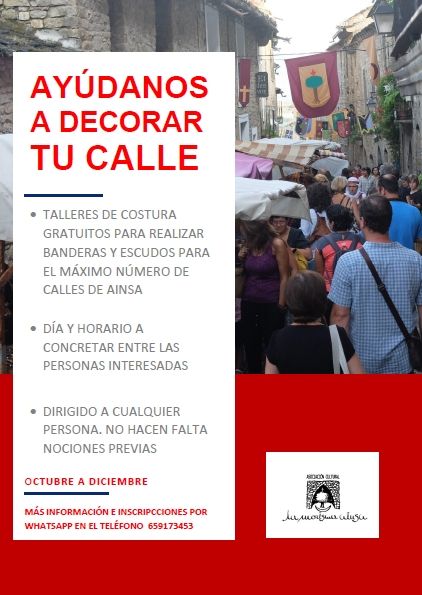 Para ello se cuenta, hasta el próximo mes de diciembre, con talleres de costura gratuitos para realizar banderas y escudos para el máximo número de calles de Aínsa.