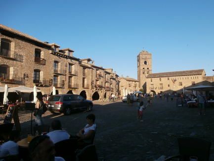 Foto: plaza Mayor de Aínsa, este agosto. Sobrarbe Digital.