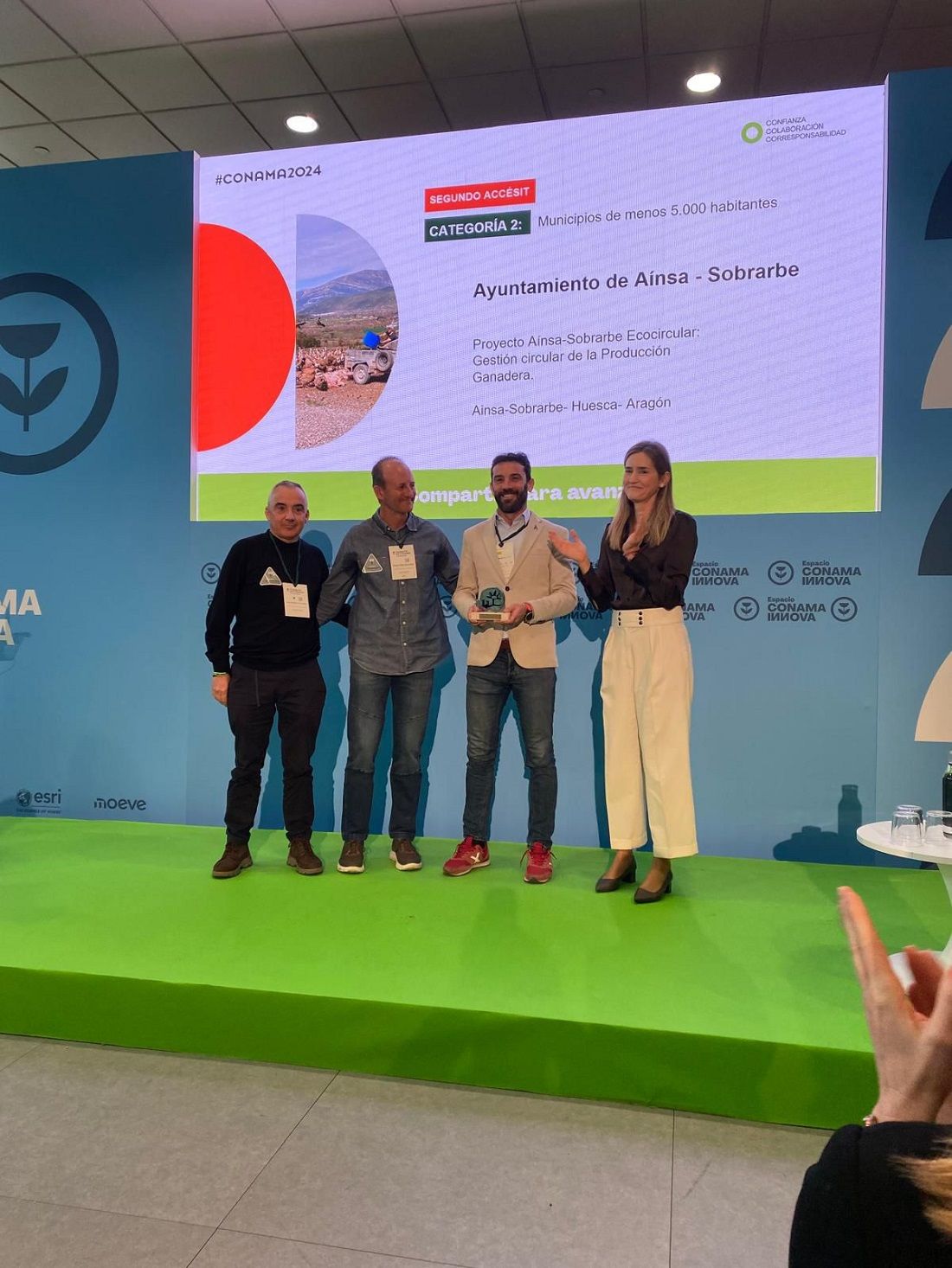 Aínsa ha sido premiada este lunes por el proyecto ‘Aínsa-Sobrarbe Ecocircular: Gestión Circular de la Producción Ganadera’, en el marco de la celebración del Congreso Nacional de Medio Ambiente, CONAMA 2024, que tiene lugar esta semana en Madrid.
