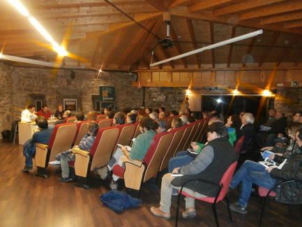 La presentación del libro tuvo lugar este viernes y fueron numerosas las personas se acercaron a la Sala de Geovisión del Castillo de Aínsa para escuchar el trabajo de investigación del profesor Lascorz.