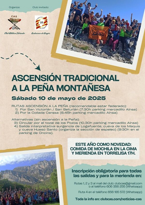 El Club Atlético Sobrarbe (CAS) organiza nuevamente, como cada segundo sábado de mayo, la tradicional Ascensión a la Peña Montañesa, “nuestra fiesta de la montaña”.