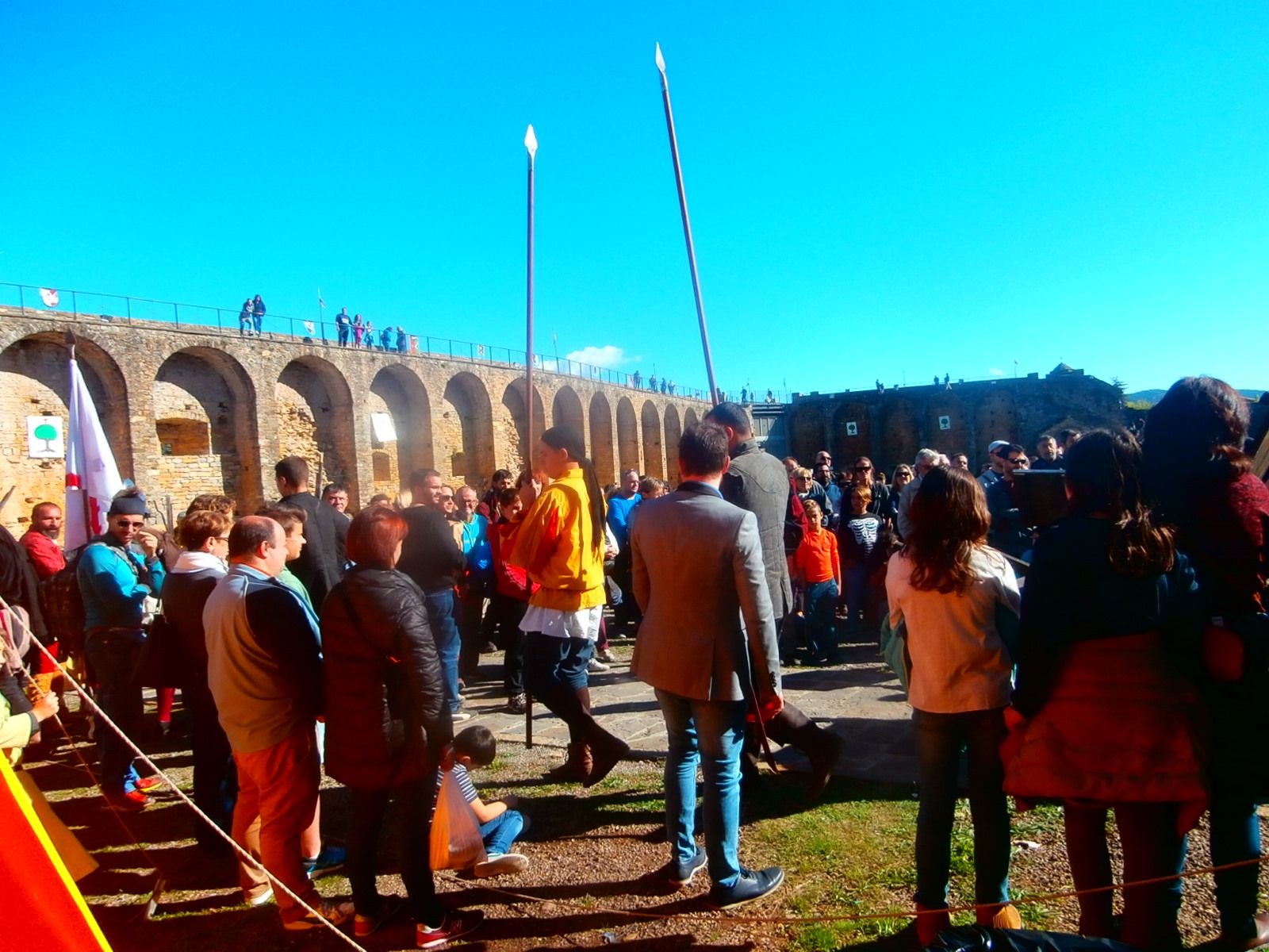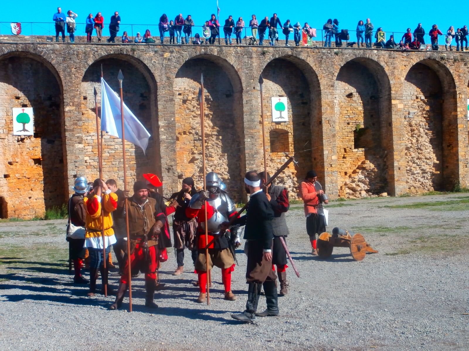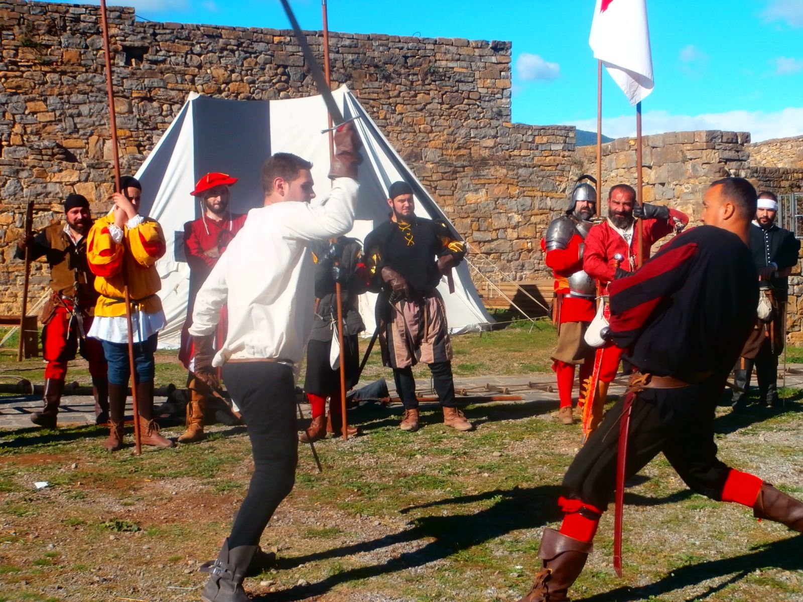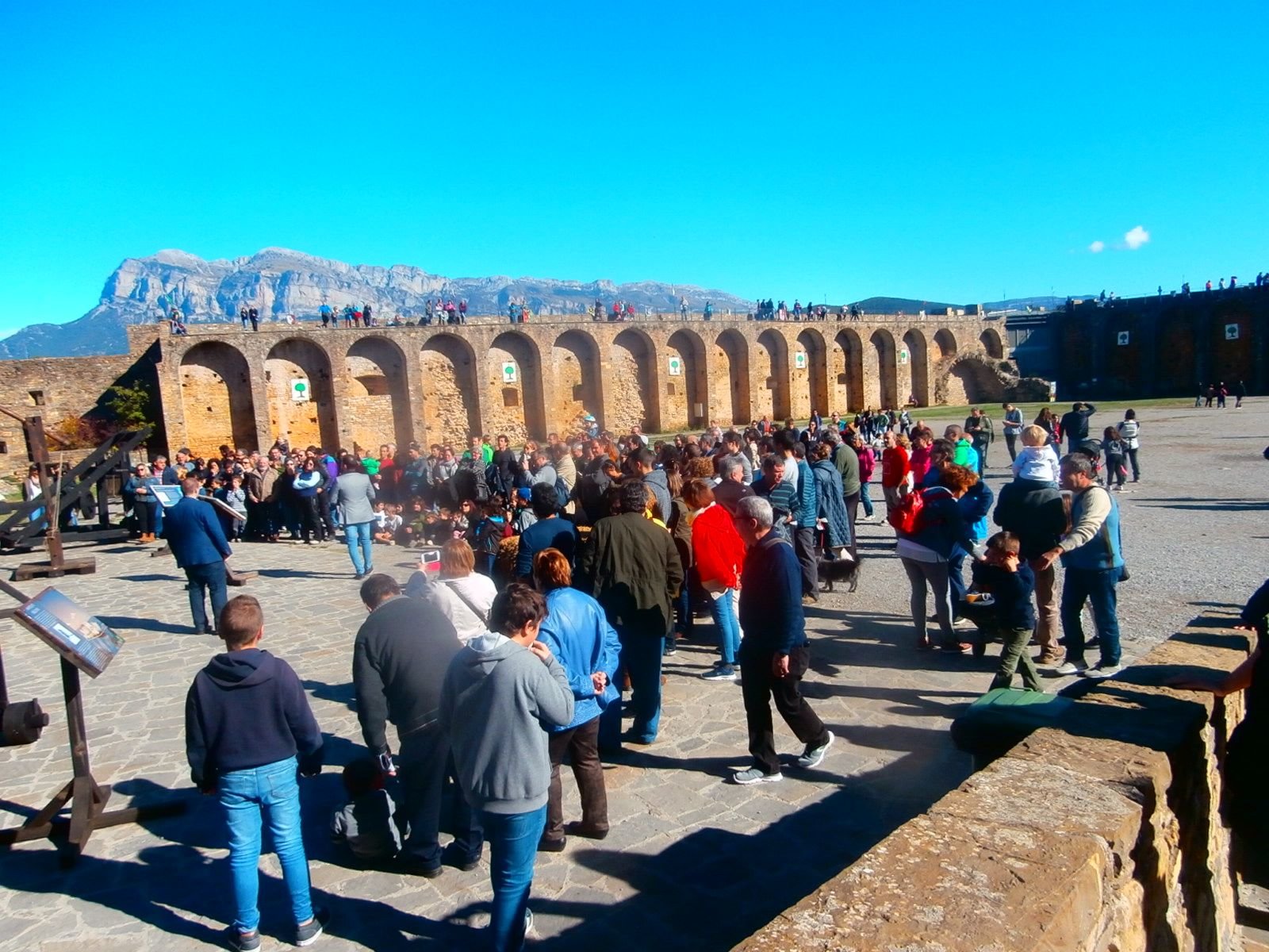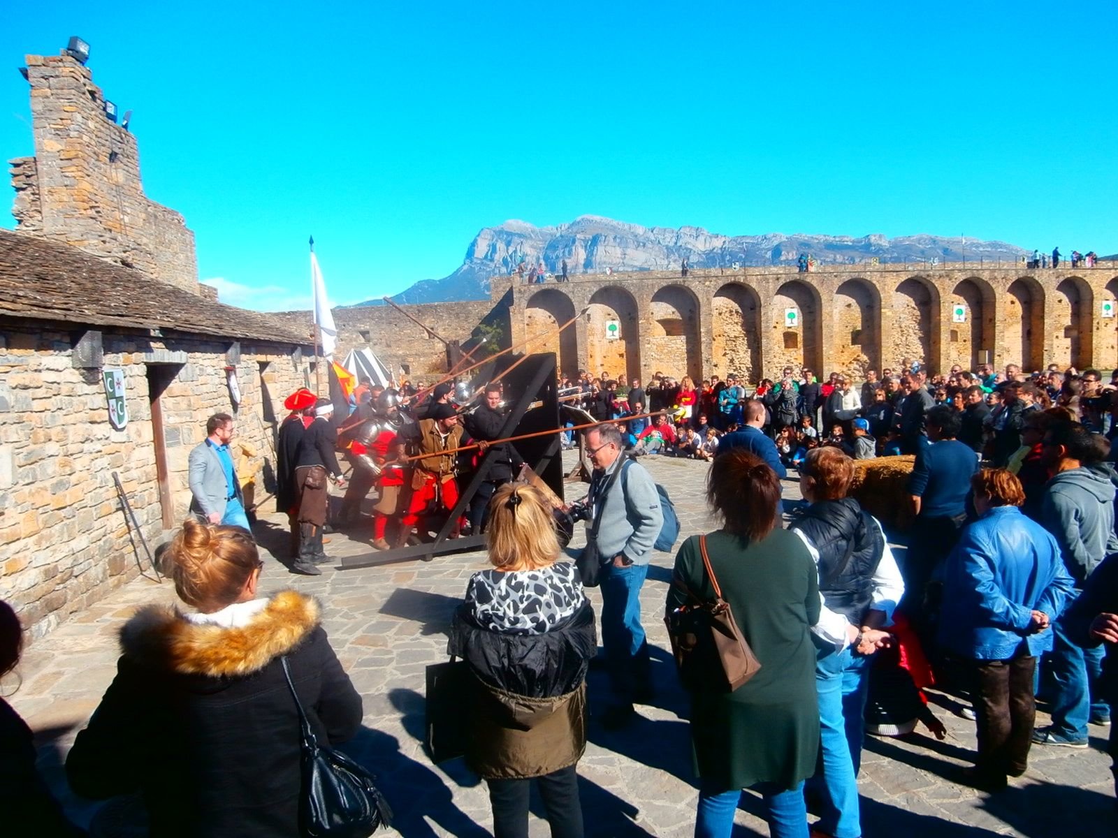 Centenares de personas han seguido con atención las exhibiciones que tanto el sábado como este domingo ha realizado el campamento militar del siglo XVI instalado en el patio de armas del Castillo de Aínsa, acompañadas de explicaciones de Darío Español y de Rubén Sáez.