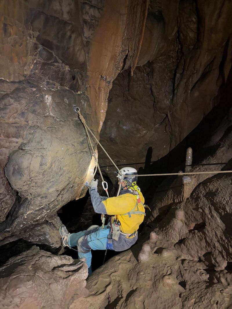La cueva de Esjamundo, que forma parte del Sistema Lecherines, en Villanúa, ha protagonizado la salida que quedó pendiente por complicaciones meteorológicas, en el pasado el Curso de Iniciación a la Espeleología organizado por el Club de Montaña Nabaín y la Federación Aragonesa de Espeleología; y que ahora se ha fusionado con una de las salidas promocionales de este deporte que querían agendar desde hace algún tiempo, según cuenta en su crónica Enrique Caminos.