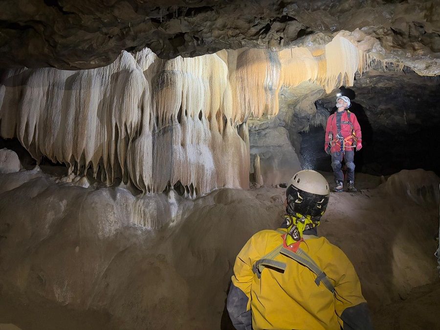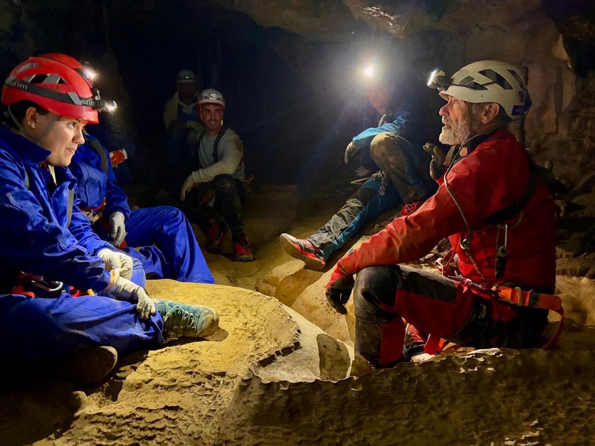 En esta ocasión, la cueva bastante seca, ya que lo normal es encontrarse con apreciable cantidad de agua. Estrechos pasos, estalactitas y estalagmitas, banderas, gours, columnas y otras muchas curiosas formaciones nos acompañarán durante todo el recorrido.