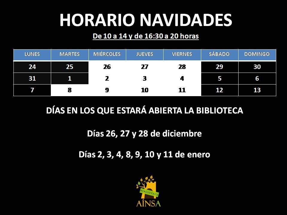 Horario en la Biblioteca Municipal de Aínsa con motivo de navidades.