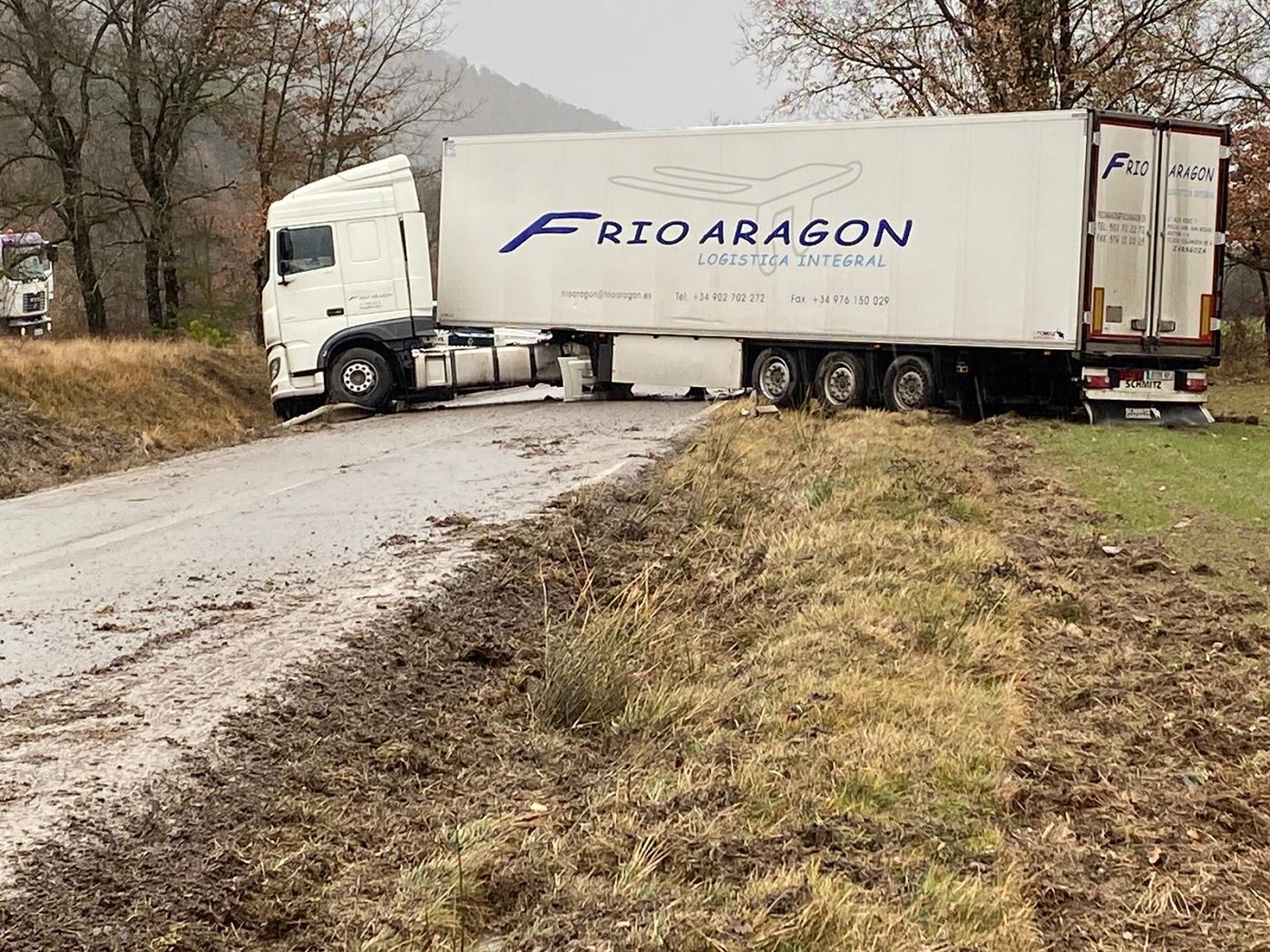 Un camión se ha quedado cruzado en la N-260 cerca de Ligüerre de Ara, término municipal de Fiscal. Afortunadamente, no hay que lamentar heridos.