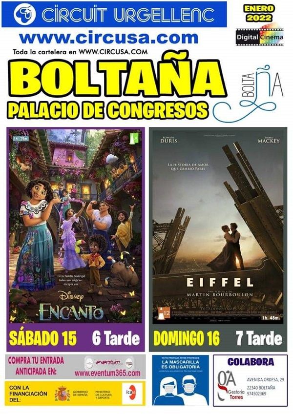 Llegan las películas ‘Encanto’ y ‘Eiffel’ al Palacio de Congresos de Boltaña este fin de semana.