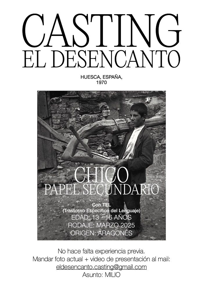 “Uno de los objetivos clave del proyecto es reflejar de manera auténtica la cultura y las tradiciones locales”. “Por ello, estamos buscando personas de la zona interesadas en participar en el cortometraje”. “Nos gustaría que algunos personajes fueran interpretados por gente local, con el acento y las formas de hablar del Pirineo aragonés, concluye la directora de El desencanto.