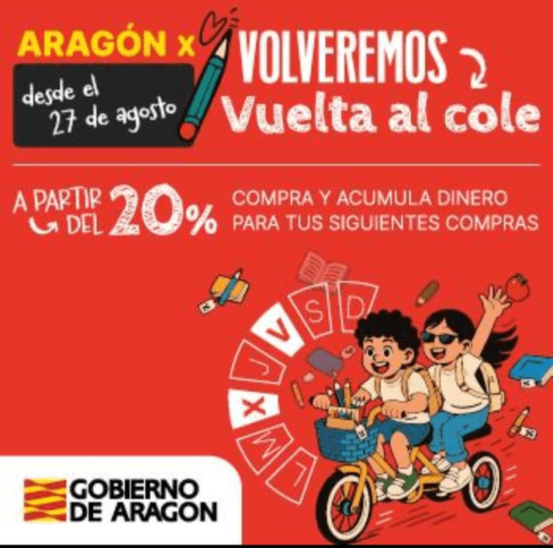 Los establecimientos ofrecerán los miércoles y viernes acumulaciones del 20% de descuento para próximas compras hasta agotar los saldos disponibles de los ayuntamientos y del Gobierno de Aragón.