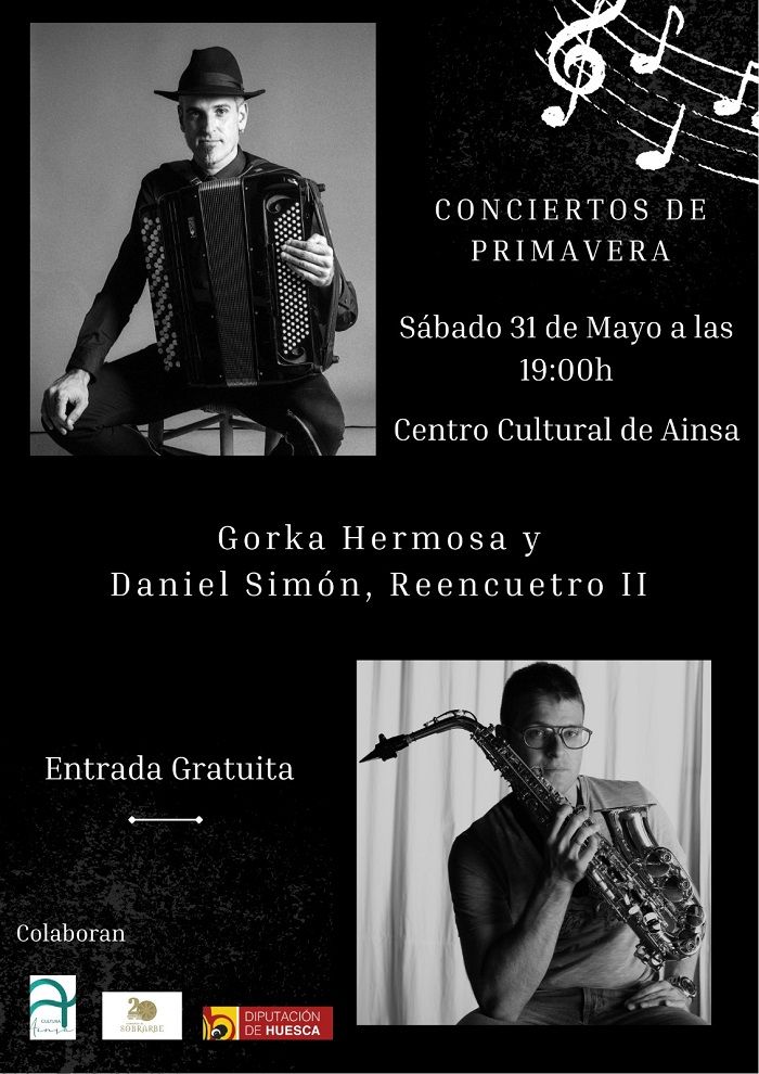 - El vasco Gorka Hermosa y el alcañizano Daniel Simón ofrecerán un concierto en el Centro Cultural de Aínsa este sábado a las 19 horas. Entrada gratuita.