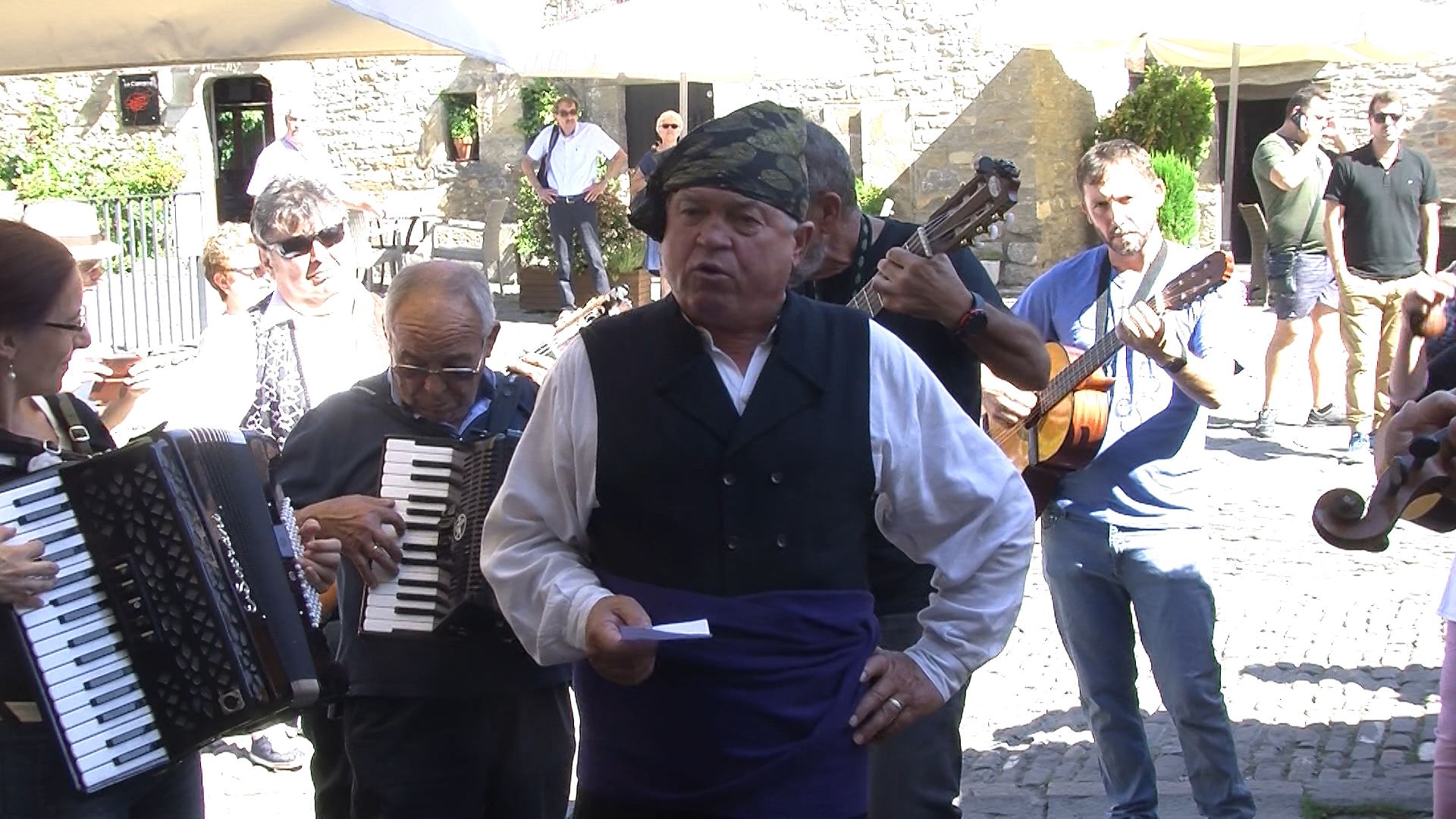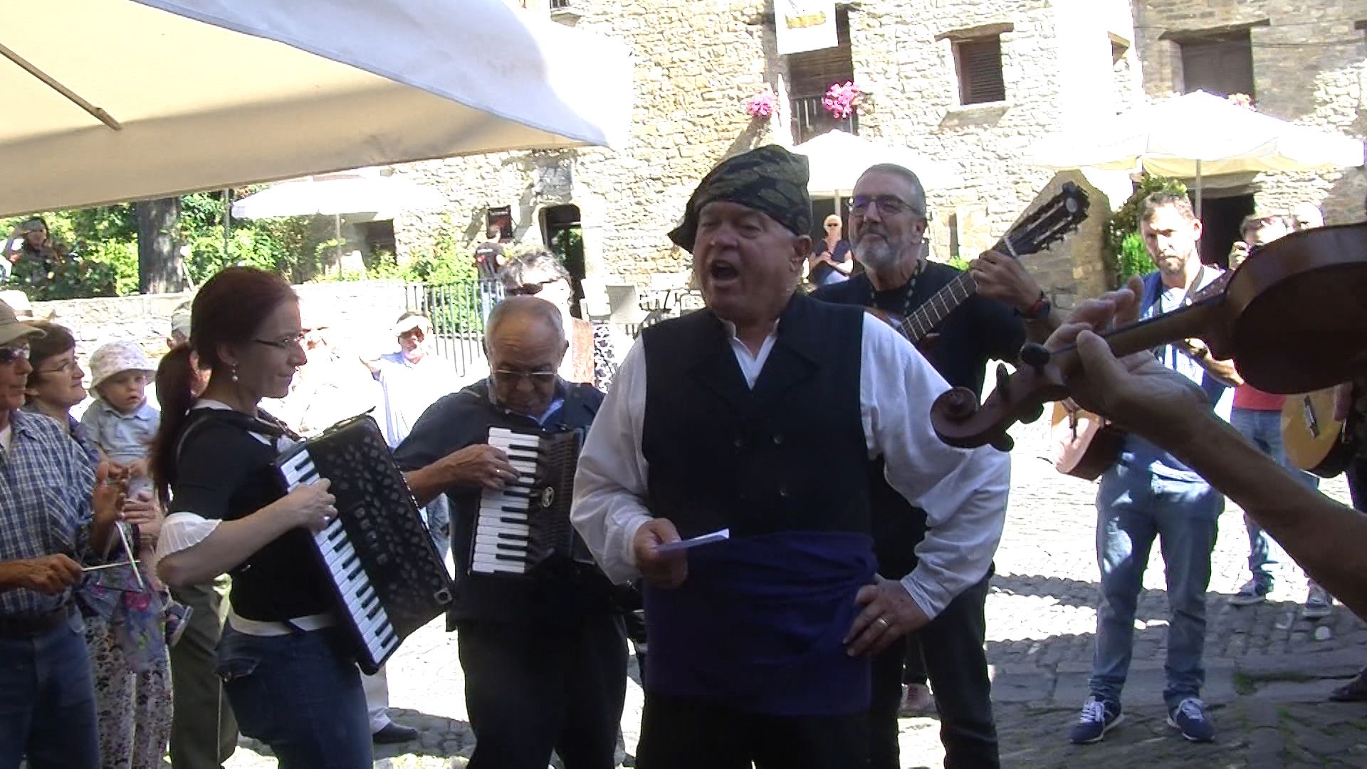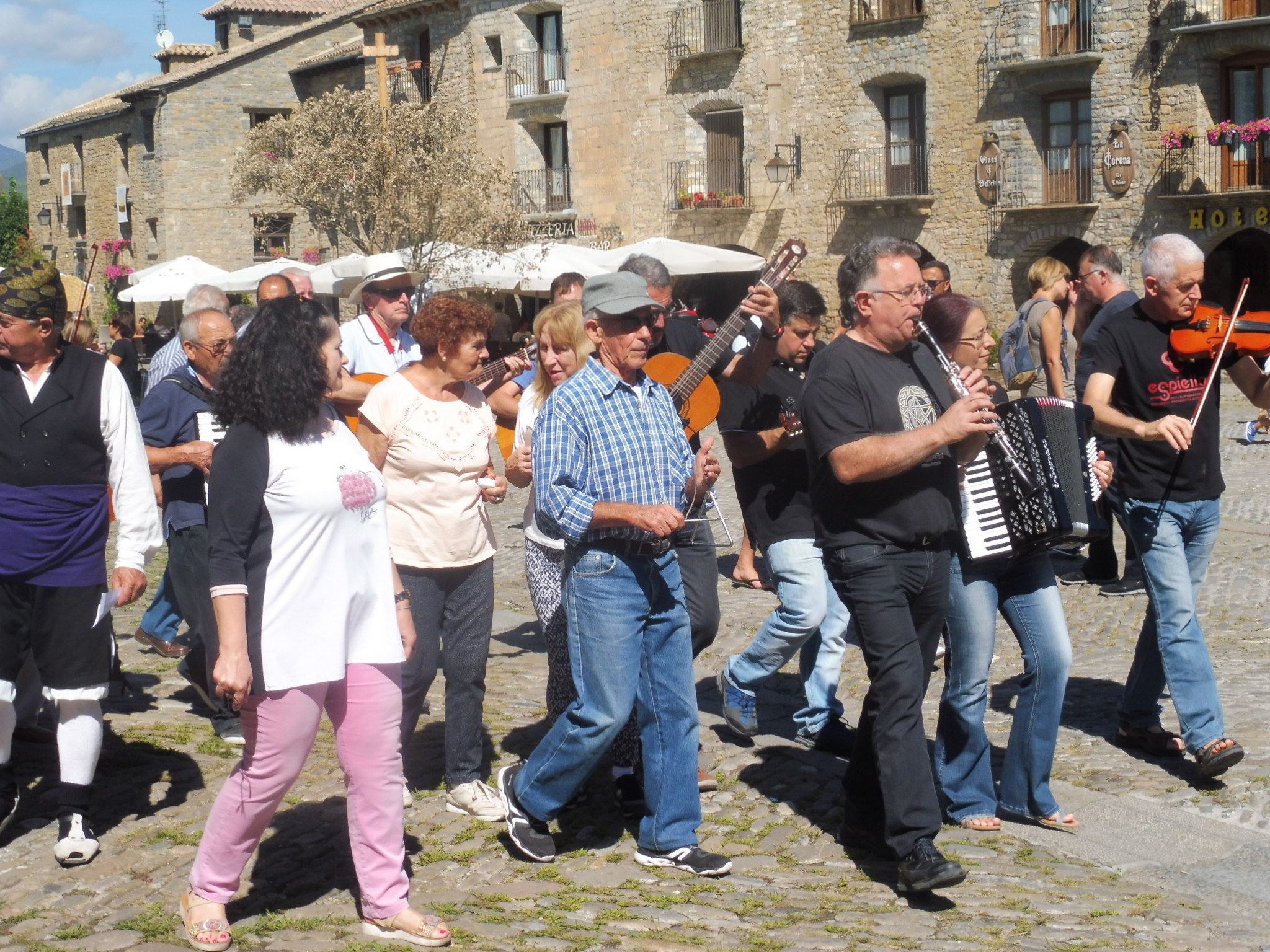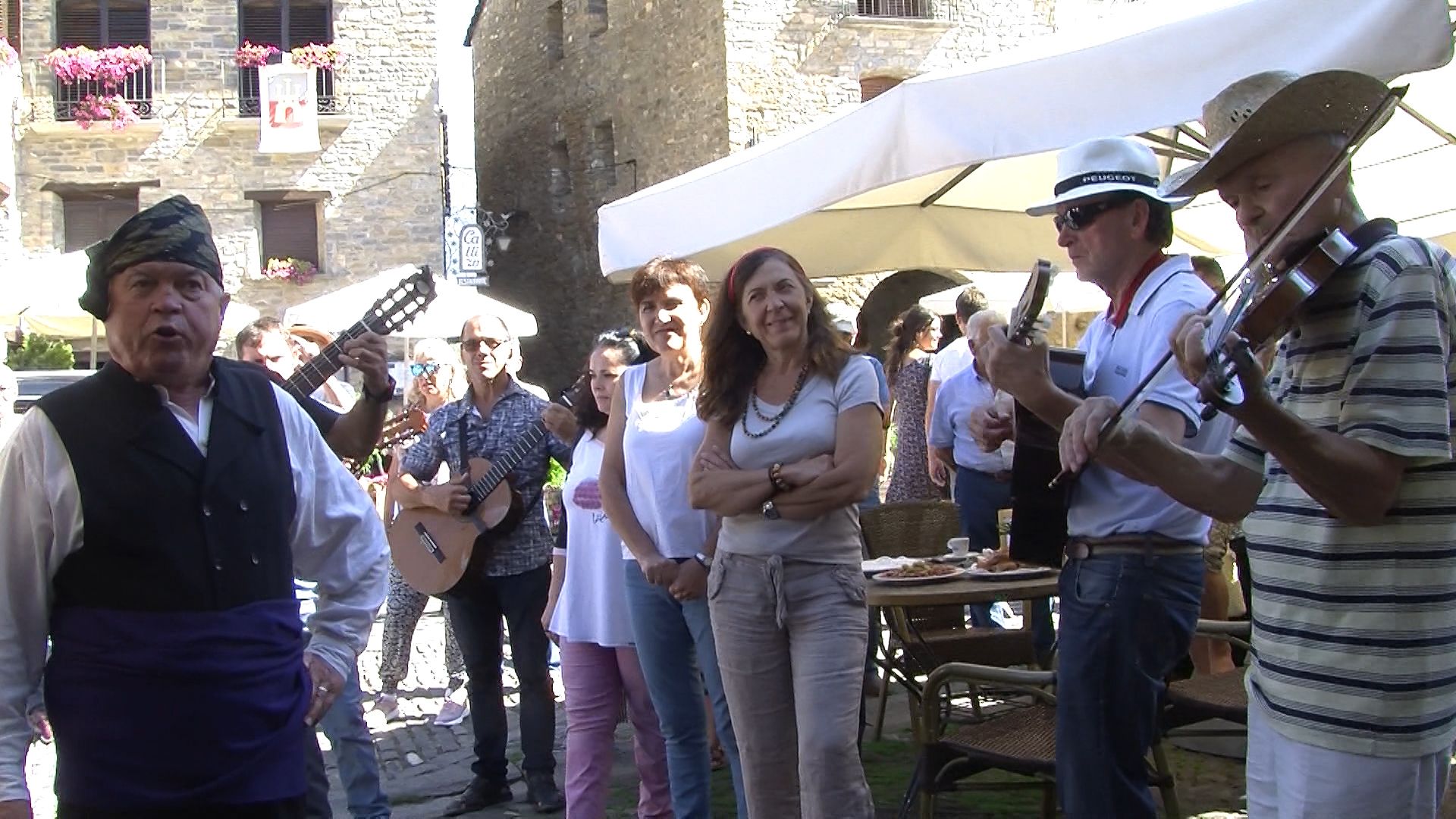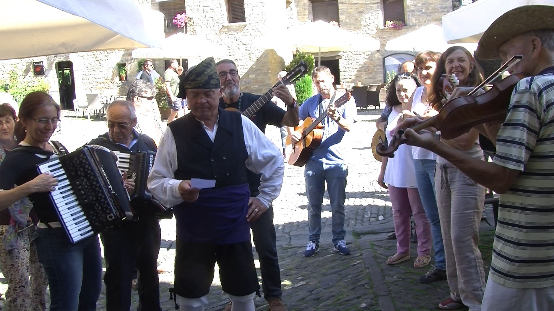 Paco Sierra acompañado de la Ronda Local recorrieron ayer (viernes 14) las calles de la villa de Aínsa con motivo de las fiestas que se celebran estos días.