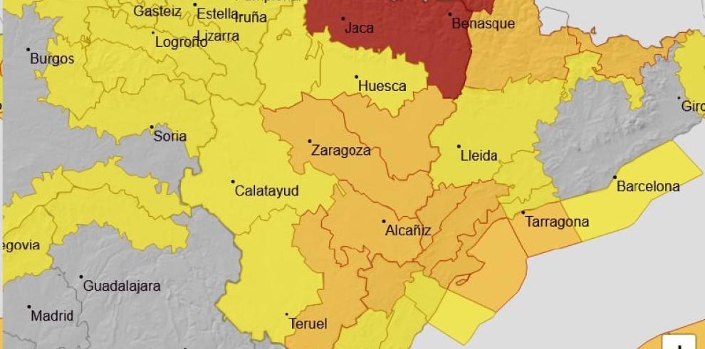Mapa de previsiones. Fuente. Gobierno de Aragón.