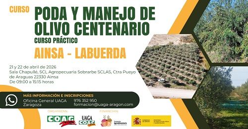 Se ha celebrado un curso sobre la poda de olivo y manejo de olivo centenario en Aínsa y Labuerda, en la comarca de Sobrarbe y también en Lierta, localidad de la comarca Hoya de Huesca sobre la poda aragonesa 4.0.
