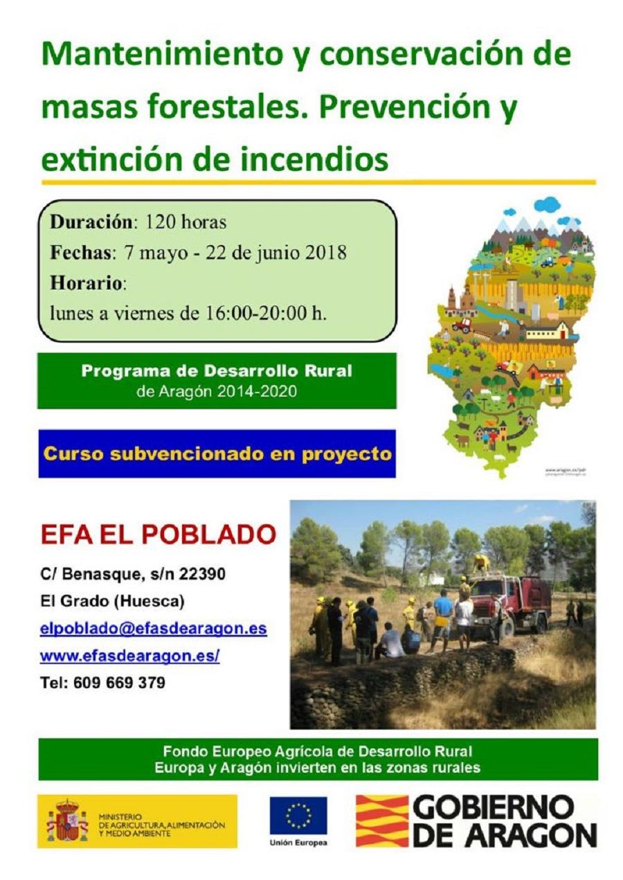 El curso ‘Mantenimiento y conservación de masas forestales. Prevención y extinción de incendios’ se impartirá desde el 7 de mayo hasta el 22 de junio, de lunes a viernes de 16 a 20 horas.
