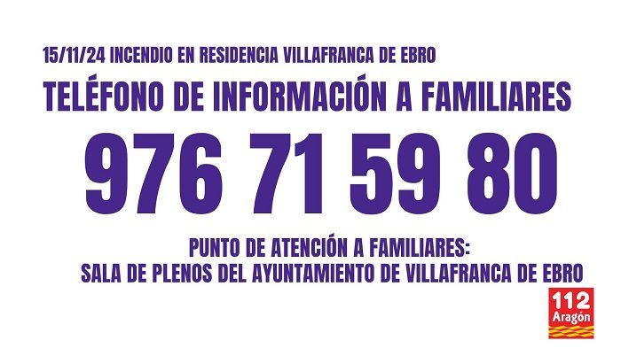 Número de atención a familiares que ha habilitado desde el 112: 976 715 980.
