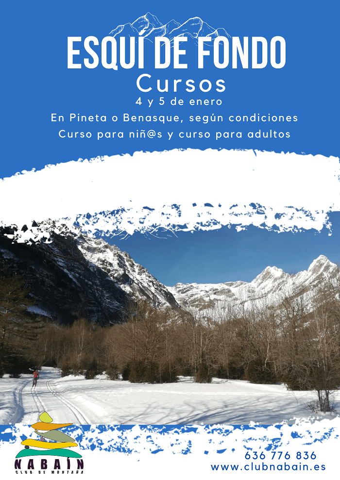 El Club de Montaña Nabaín ha programado cursos de esquí de fondo, para niños y mayores. El 4 y 5 de enero de 2025 tendrá lugar esta propuesta, en colaboración con el equipo del Espacio Nórdico de Pineta.