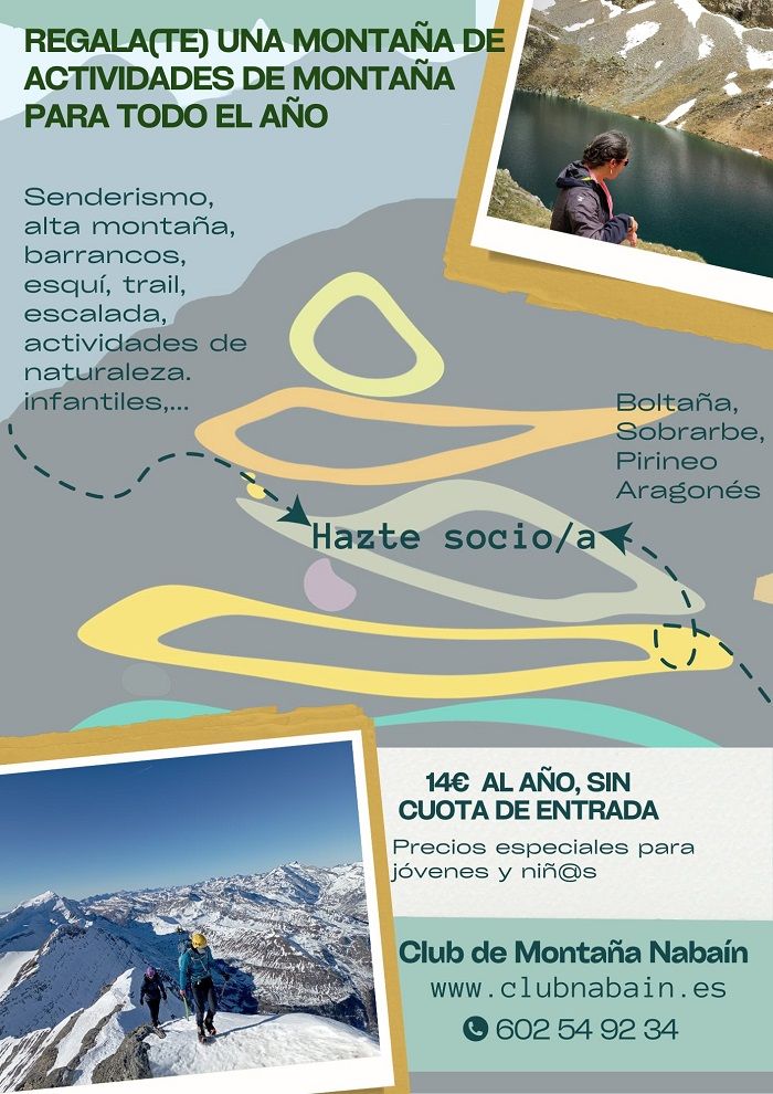 Una concurrida asamblea anual de socios del Club Nabaín ratificaba el calendario de actividades -que llena la práctica totalidad de los fines de semana de 2025-, y abría la incorporación de nuevos integrantes tras aprobar las cuotas para este ejercicio (14€ año, con importantes descuentos para jóvenes y niños). En el mismo encuentro se hacía balance del año 2024, en el que destacaba el notable incremento de socios y la ampliación y consolidación de secciones -en ámbitos como las actividades de naturaleza, el barranquismo o el esquí-.