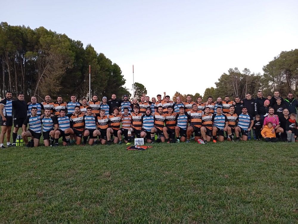 La jornada, sin embargo, tuvo un significado mucho más profundo que el meramente deportivo. Antes del pitido inicial, el estadio guardó un emotivo minuto de silencio en memoria de Enrique Adrián Ceballos “Pipino”, primer capitán del Quebrantahuesos y figura muy querida en el rugby aragonés. Jugadores, cuerpo técnico, familiares y aficionados se unieron en un homenaje sencillo pero cargado de sentimiento, recordando el legado de liderazgo y pasión que “Pipino” dejó en el club.