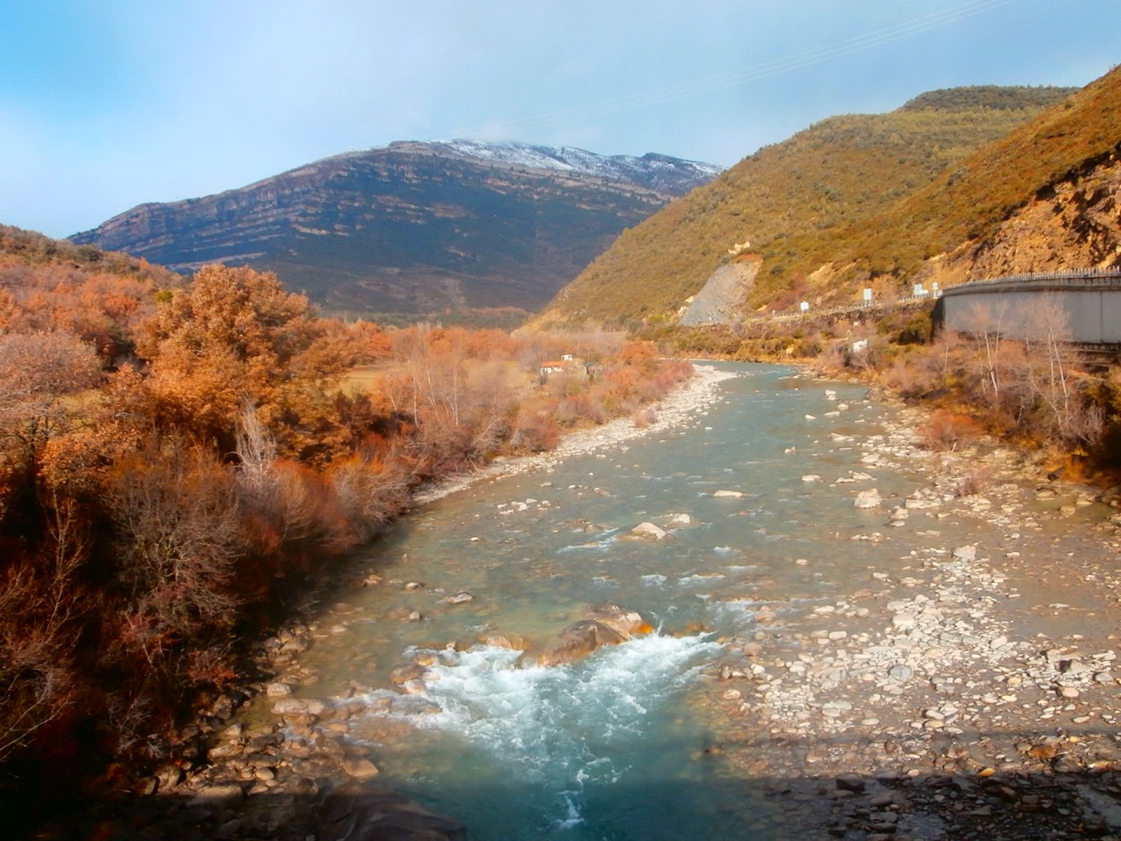 Imagen del río Ara a su paso por Boltaña realizada esta mañana.