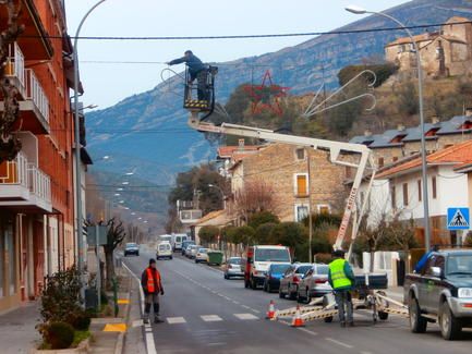 Tras la navidad y la celebración de los Reyes Magos, toca desmontar la decoración navideña, en este caso, las luces que han decorado las calles principales de Boltaña, así como su plaza Mayor durante las fiestas.