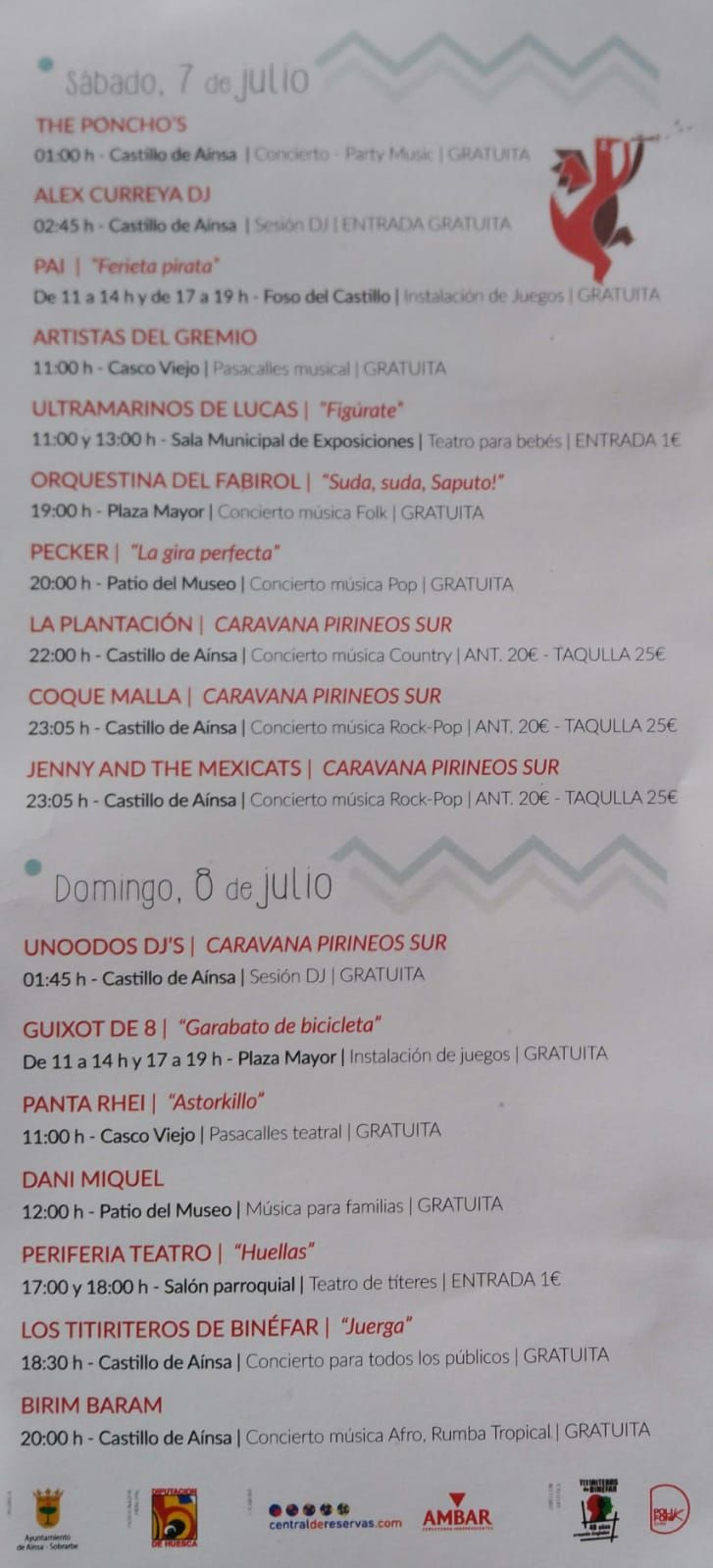 El Festival Castillo de Aínsa es fruto de la colaboración entre Ayuntamiento de Aínsa-Sobrarbe, Diputación Provincial de Huesca, Titiriteros de Binéfar (encargado de la programación cultural y escénica) y la Asociación PolifoniK Sound, encargada de la organización de las actuaciones previstas en el Castillo el día 6, con Zicután, The Bad Father’s, The Poncho’s y Alex Curreya. También, de las del sábado 7, en este caso, organizadas junto con Pirineos Sur.
