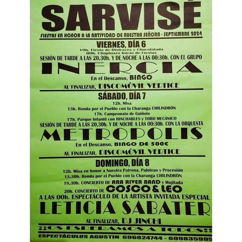 Alto AragónBrotoSobrarbeSociedad Fiestas en Sarvisé 05/09/2024 - 16:20 Imagen reciente de Sarvisé. Foto: SobrarbeDigital. Sarvisé celebra sus fiestas en honor a la Natividad de Nuestra Señora, desde el viernes día 6 hasta el domingo día 8 de septiembre. Programa