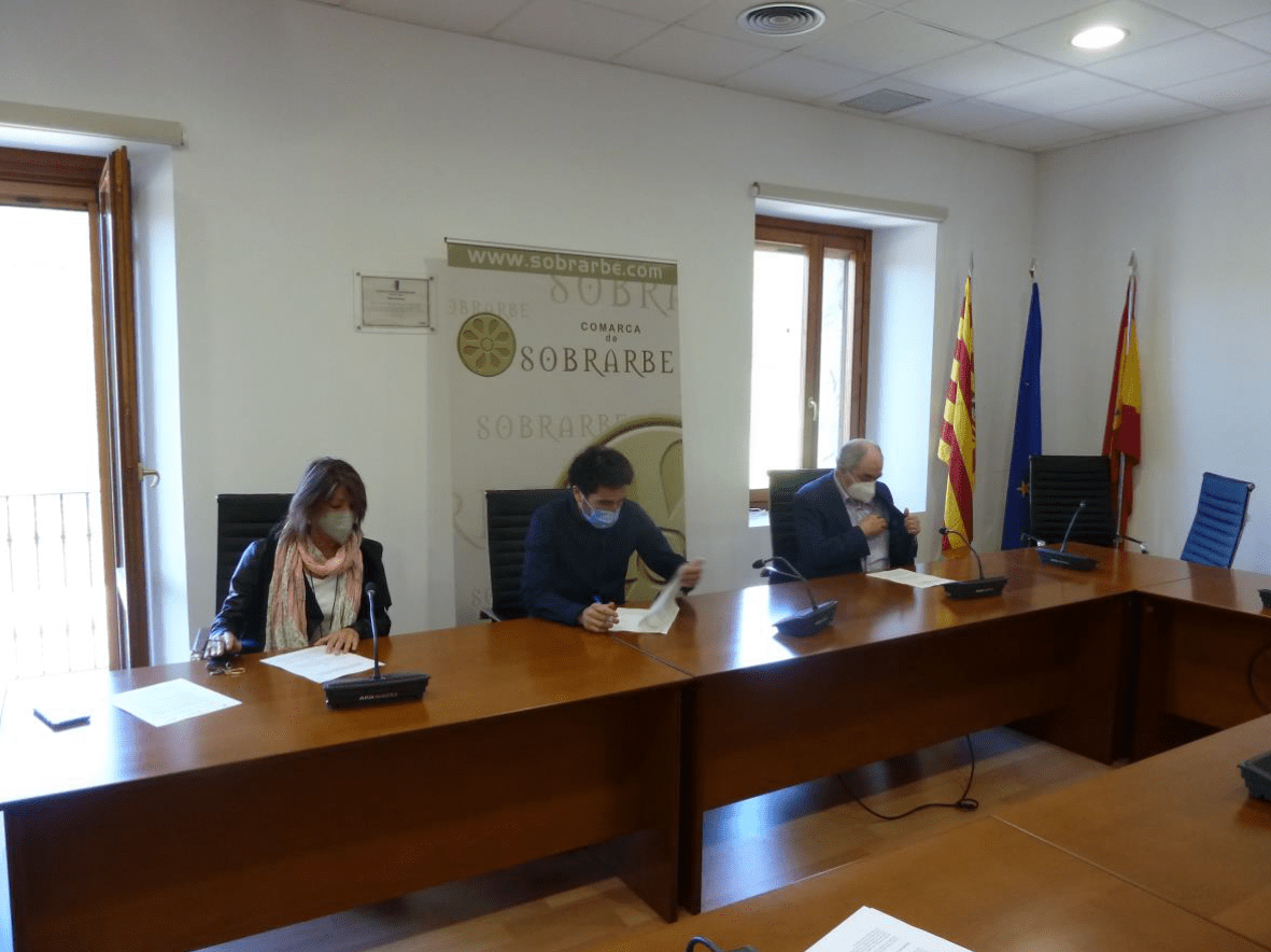Los presidentes de la comarca de Sobrarbe, José Manuel Bielsa Manzano, de la Asociación Empresarial y Turística de Sobrarbe, Paz Agraz Castillo, y de la Cámara de Comercio, Industria y Servicios de la Provincia de Huesca, Manuel Rodríguez Chesa, han renovado para 2021 el convenio de colaboración por el cual los vecinos y empresas de Sobrarbe tienen a su disposición diversas líneas de apoyo para su desarrollo socioeconómico.