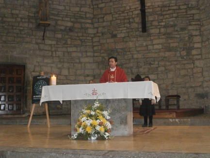 FOTO: el sacerdote, Juan Diego Tamayo, oficiando una misa en la iglesia parroquial de Boltaña