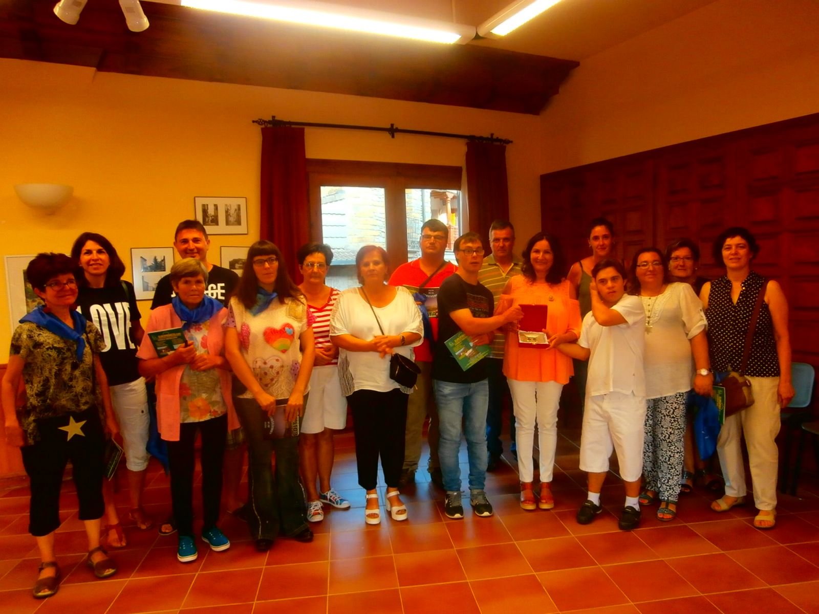 Antes del pregón los usuarios de Atades Boltaña recibieron el escudo del Ayuntamiento de Boltaña como reconocimiento por ser los pregoneros de este año en las Fiestas de la Convivencia de la localidad. Un acto que congregó a concejales de las diferentes formaciones políticas, además de familiares y amigos, también asistió el presidente de la Comarca de Sobrarbe, Enrique Campo.