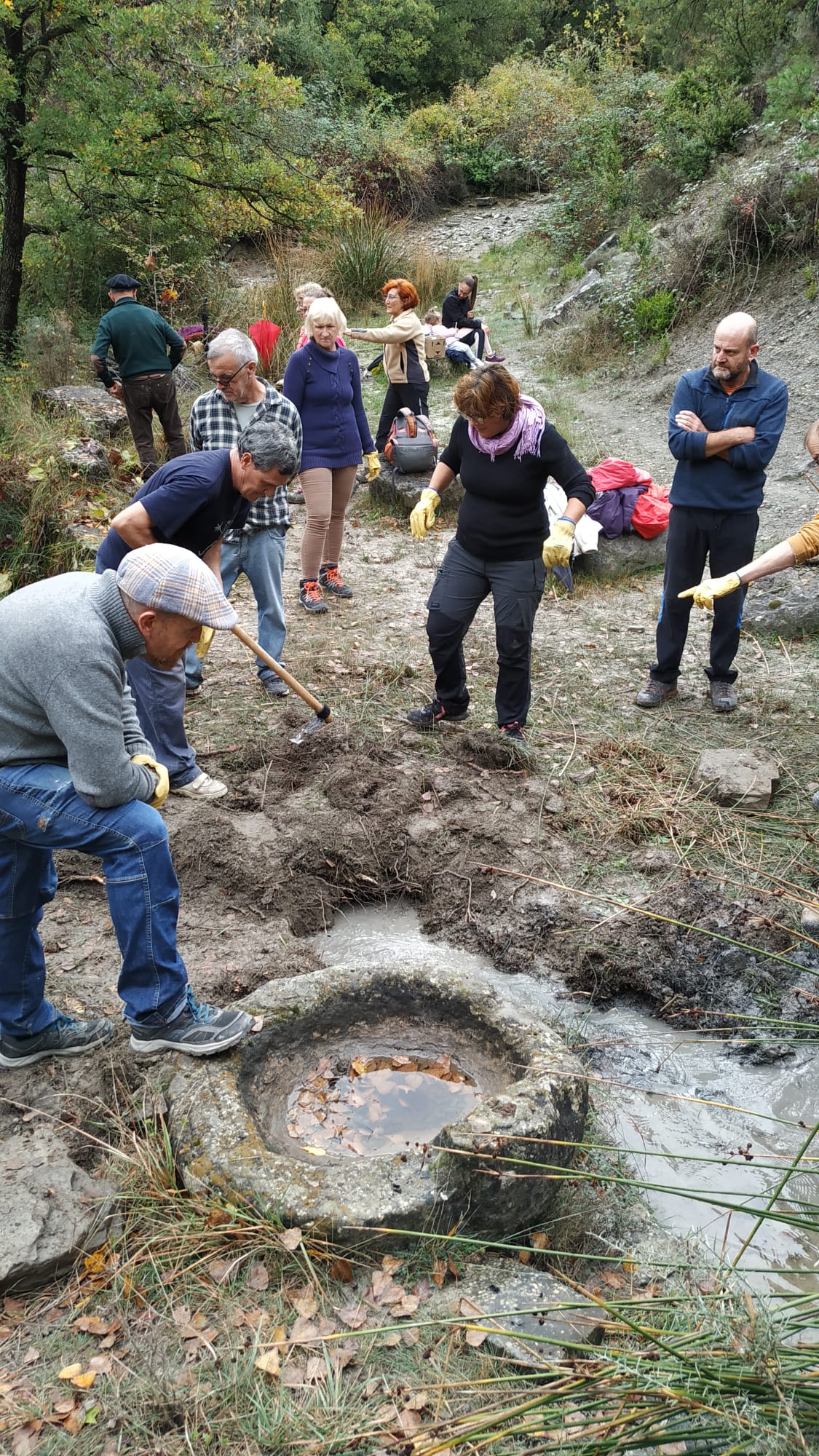 Los vecinos de Guaso estuvieron trabajando en el entorno de la fuente Formayor, este domingo 31, de octubre. Su objetivo es recuperar esa zona, una cita que estuvo organizada por la Asociación de Vecinos y Amigos de Guaso.