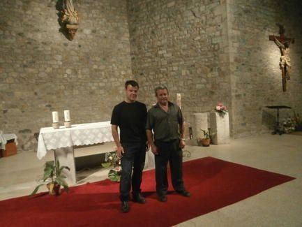 La acústica en la parroquia de la Asunción de Nuestra Señora, en Bielsa, es muy buena según comentaba Santiago Giral y Miguel Fuertes tras haber cantado durante la misa con motivo del Encuentro Comarcal de Mayores que se celebraba en Bielsa.