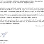 Manifiesto de apoyo de la Asociacion Empresarial Turística de Sobrabre a la propuesta de un plan de rescate público del sector turístico.