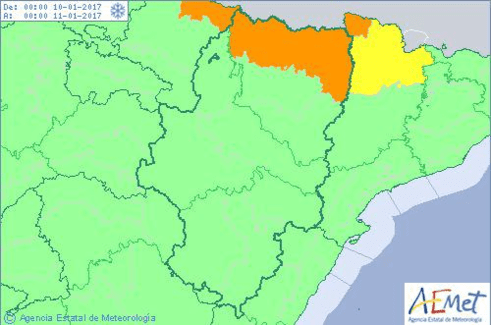 La Dirección General de Justicia e Interior, ha informado de que la Agencia Estatal de Meteorología (AEMET) ha emitido aviso de nivel naranja por nevadas en el Pirineo para este martes, desde las 00:00 hasta las 00:00 horas del día 11.