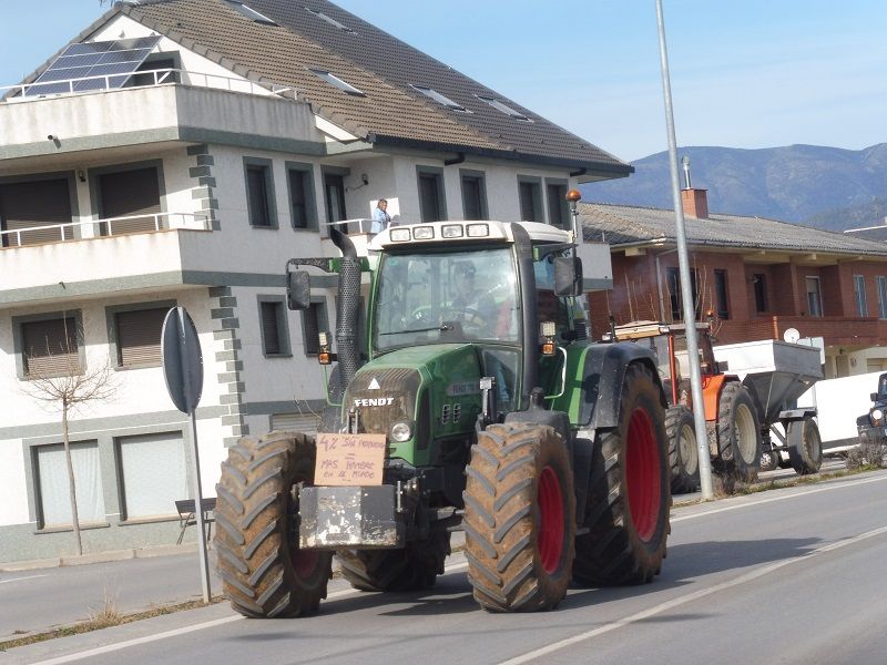 Ese martes, muchos agricultores y ganaderos de distintos pueblos de la comarca de Sobrarbe se han citado a primera hora de la mañana en Aínsa, para iniciar una protesta que ha sido muy sonora y visible por las calles de Aínsa llegando también a Boltaña.