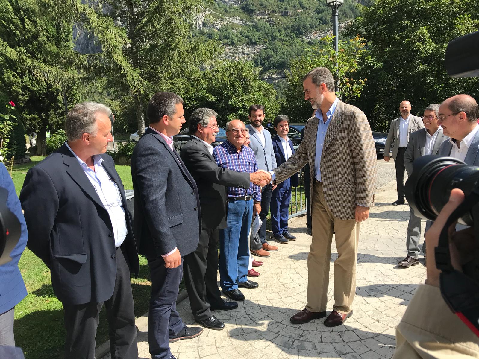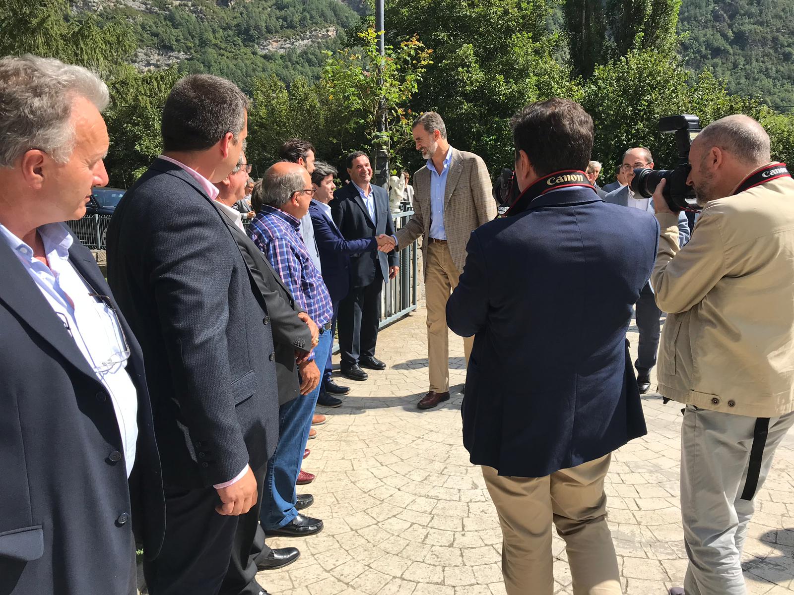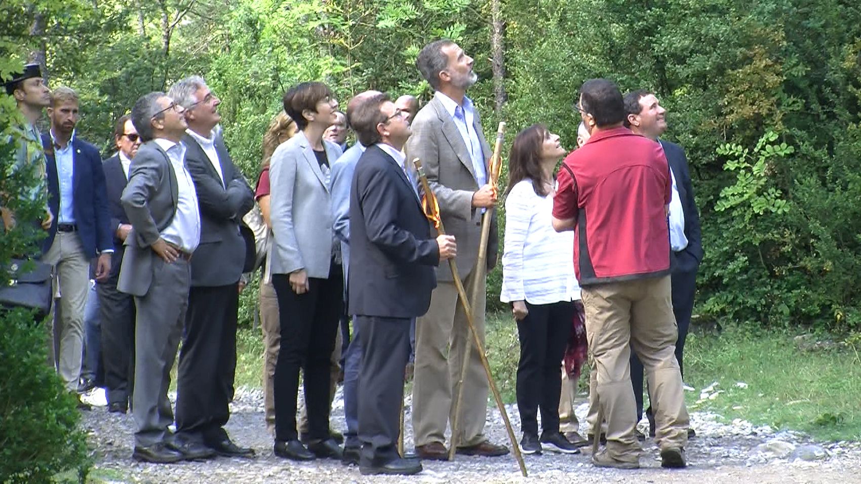 Con motivo del Centenario del Parque Nacional de Ordesa y Monte Perdido, el rey Felipe VI ha visitado, en primer lugar Torla y el Centro de Visitantes. Después un recorrido por la senda de la Pradera hasta el puente de Sarratieto.