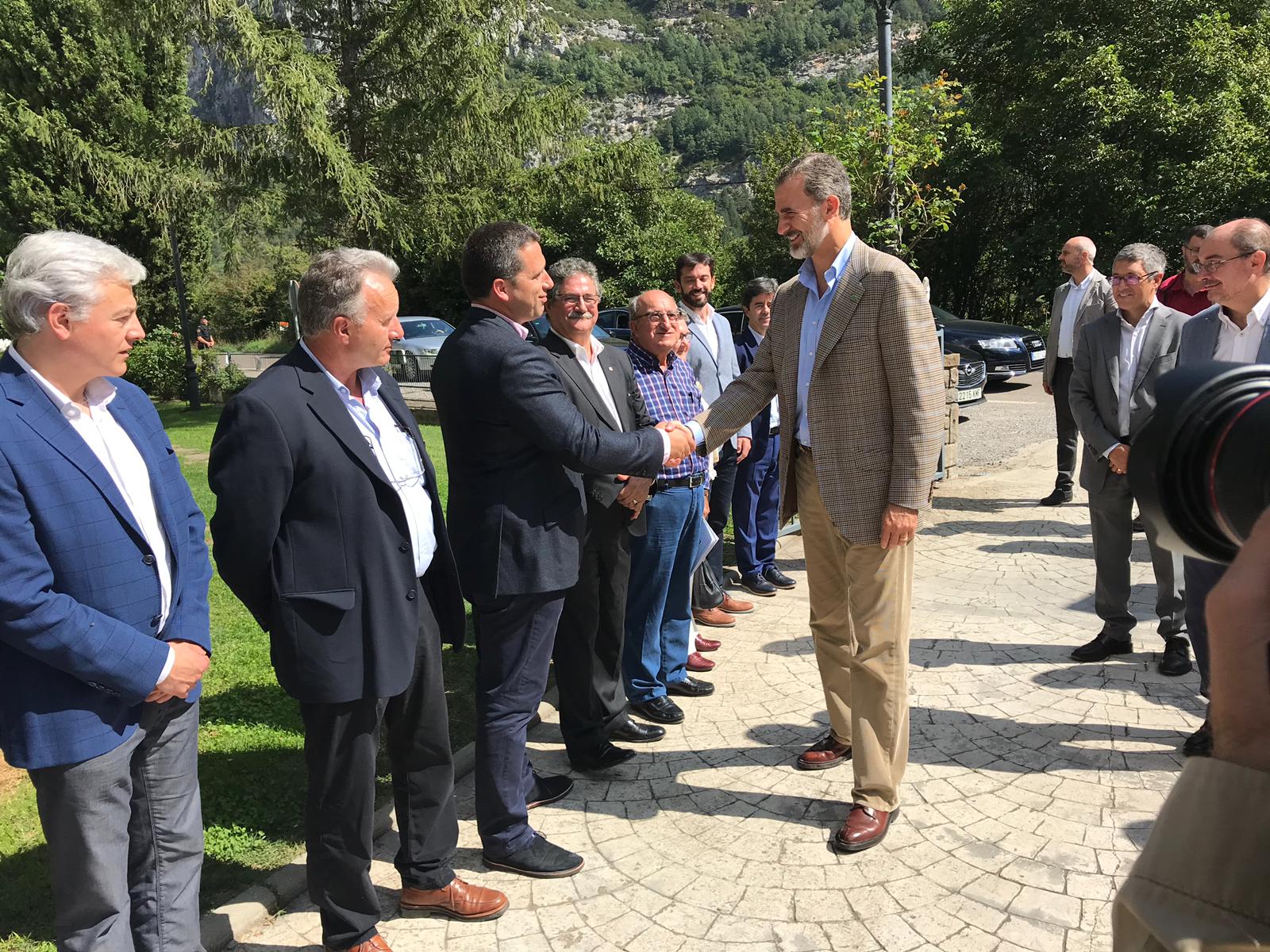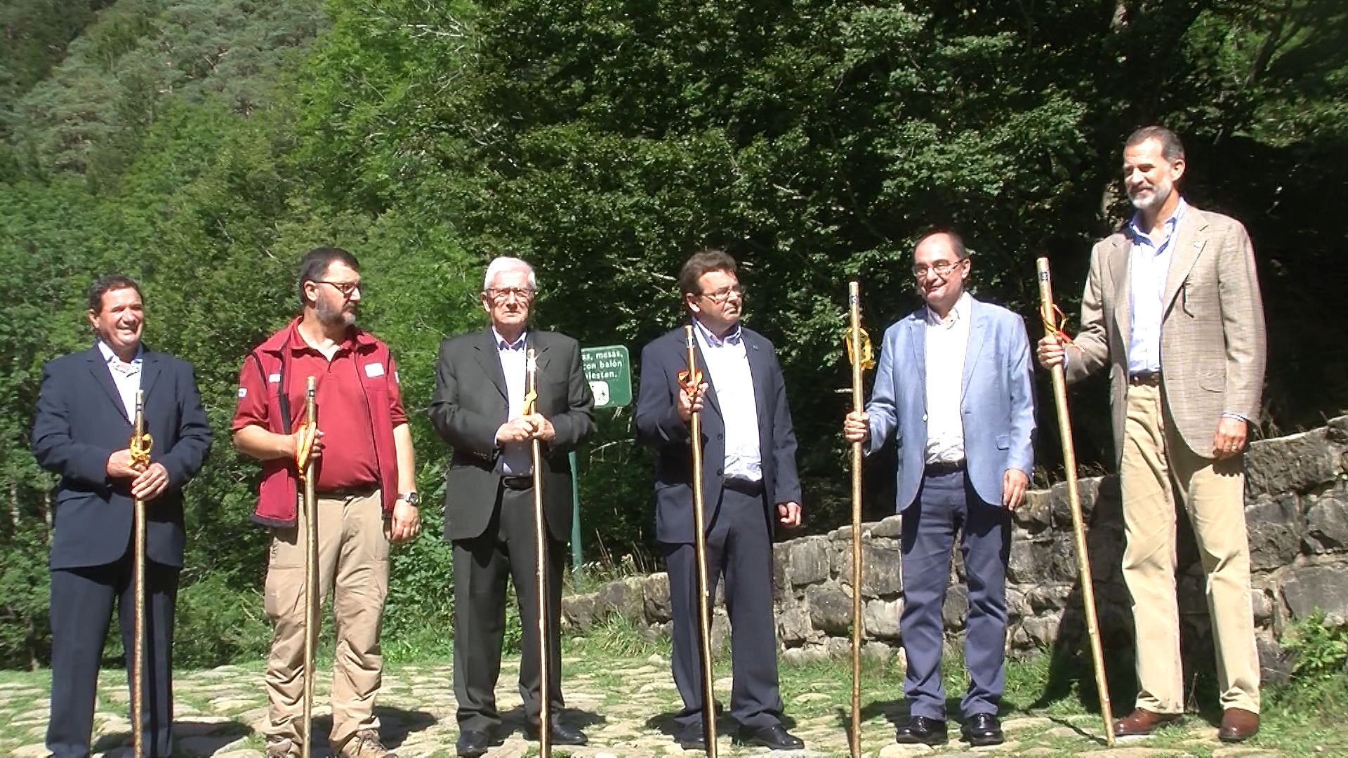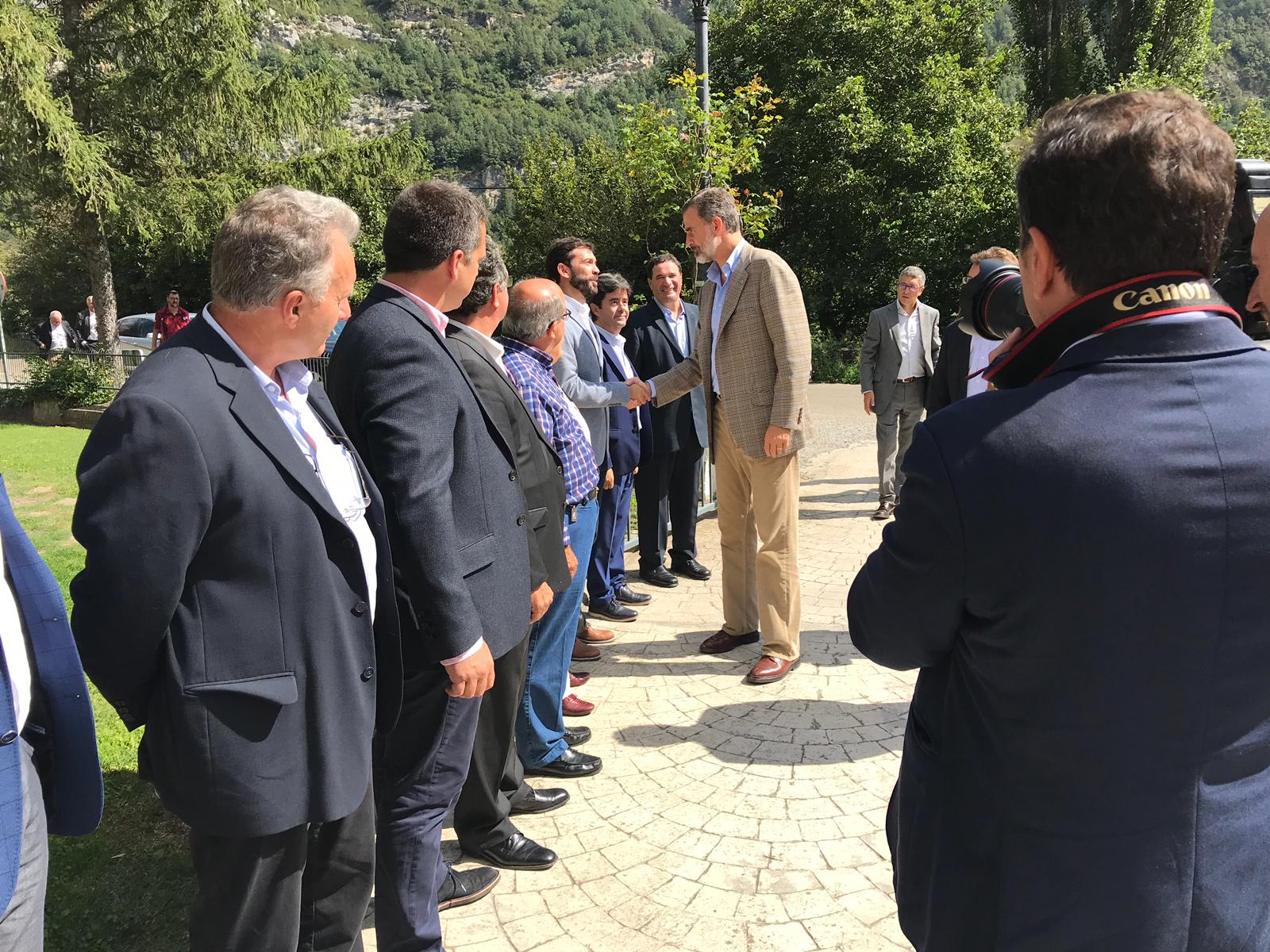 Con motivo del Centenario del Parque Nacional de Ordesa y Monte Perdido, el rey Felipe VI ha visitado, en primer lugar Torla y el Centro de Visitantes. Después un recorrido por la senda de la Pradera hasta el puente de Sarratieto.
