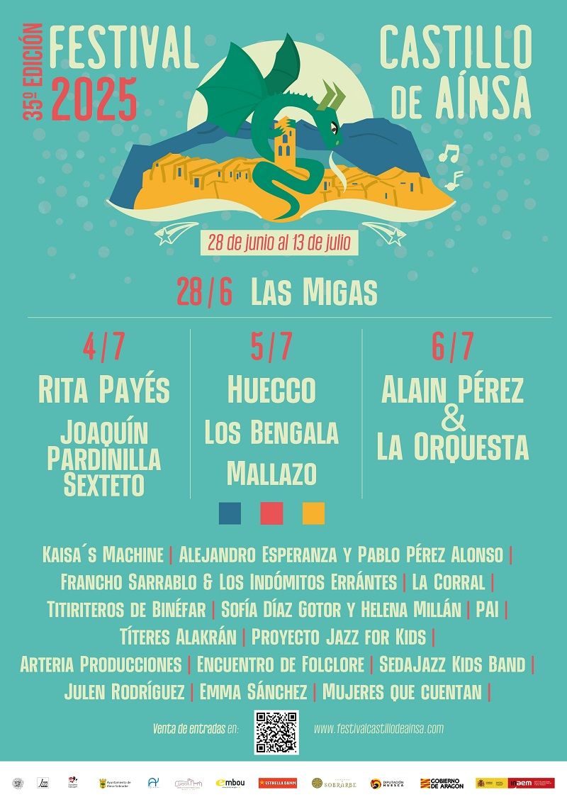 Las Migas abrirán la programación de la XXXV edición del Festival Castillo de Aínsa con un concierto exclusivo para 200 personas en el Patio del Museo de la Villa Medieval. Con el flamenco fusión de las catalanas se cierra oficialmente el cartel de 2025, donde nuevamente conviven artistas de distintos lugares de Aragón, de España y del mundo ofreciendo espectáculos de diversas disciplinas y para todo tipo de públicos. El Festival se celebrará del 28 de junio al 13 de julio.