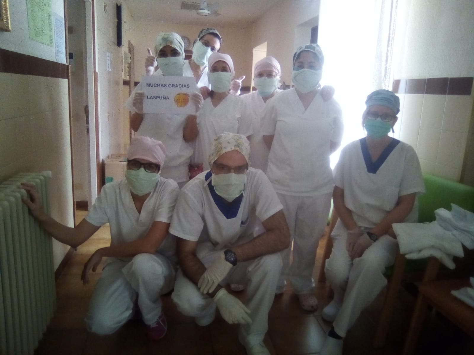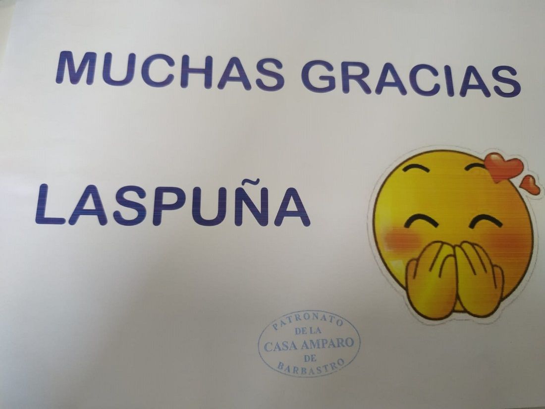 AinsaBarbastroLaspuñaSobrarbe Laspuña recibe el agradecimiento de Casa Amparo de Barbastro 17/04/2020 - 17:05 Grupo de profesionales de Casa Amparo de Barbastro. La residencia de ancianos Casa Amparo de Barbastro agradece las mascarillas recibidas desde Laspuña. Además de las gracias, también se aprecia el sello del Patronato de la Casa Amparo de Barbastro.