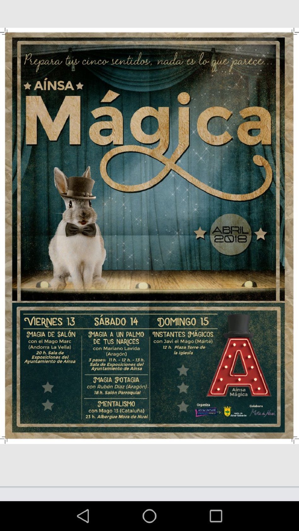 Al día siguiente será el aragonés Mariano Lavida presentará su ‘Magia a un palmo de tus narices’, el mago ofrecerá tres pases: a las 11 horas, a las 12 y a las 13 horas, en la Sala de Exposiciones del Ayuntamiento de Aínsa. Y más ‘Magia Potagia’ también con el aragonés Rubén Díaz, a las 18 horas en el Salón parroquial. Y el Mago 13, de Cataluña, cerrará la jornada a las 23 en el Albergue Mora de Nuei, en Aínsa.