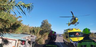 Choque entre dos camiones y un turismo en Ontiñena
