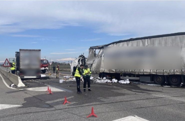Dos heridos al colisionar dos camiones en la N-240 en Barbastro