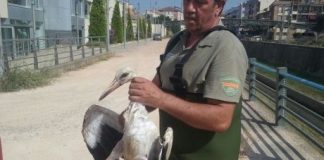 Los APN rescatan a una cigüeña en Barbastro con una pata...