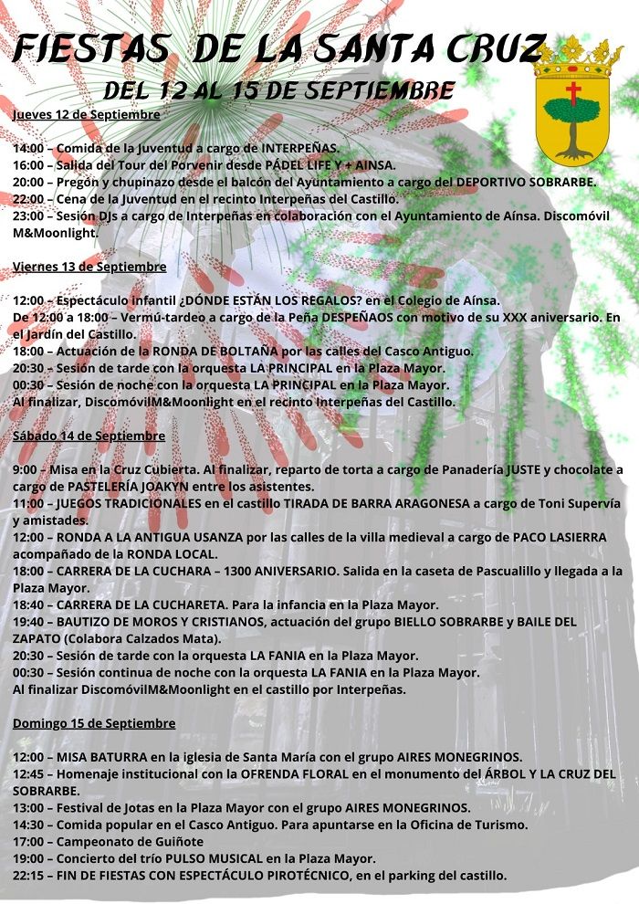 Este jueves, a las 20 horas, han comenzado oficialmente las fiestas en honor a la Exaltación de la Santa Cruz en Aínsa. El encargado de dar el pregón ha sido el Deportivo Sobrarbe, un equipo de fútbol que se creó hace tres temporadas y que devolvió la ilusión por este deporte al pueblo.