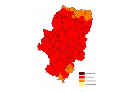 Riesgo alto de incendios en TODAS las comarcas de Aragón, excepto en el Pirineo y Gúdar y Javalambre.