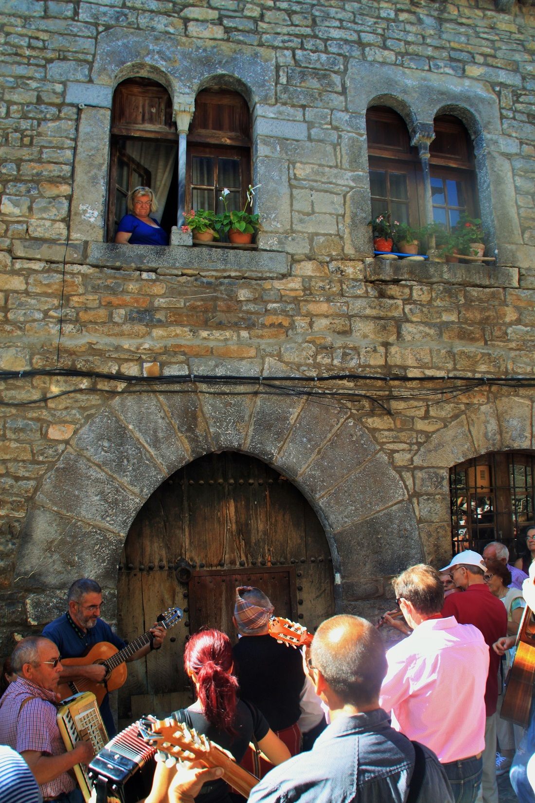 La fotografía elegida hace alusión a La Ronda de Boltaña del 14 de septiembre por las calles de la villa medieval y con la fachada de una de las casas más emblemáticas del casco histórico.