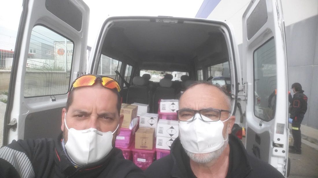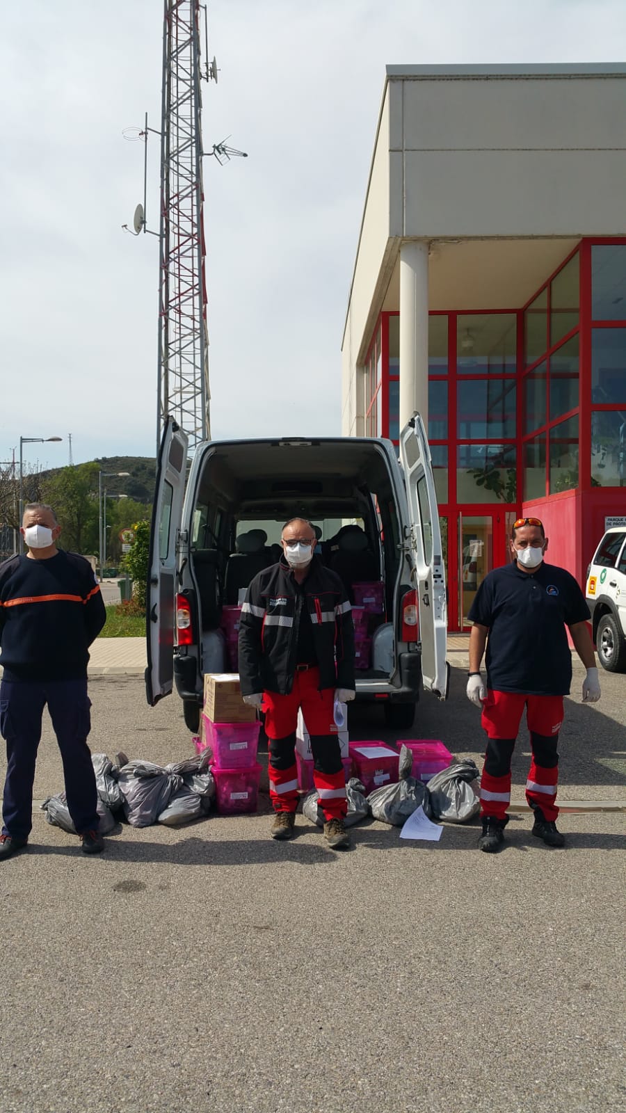 La Asociación de Voluntarios de Protección Civil de Sobrarbe colaboran en el reparto de material de protección individual dado por el Gobierno de Aragón para los servicios comarcales.